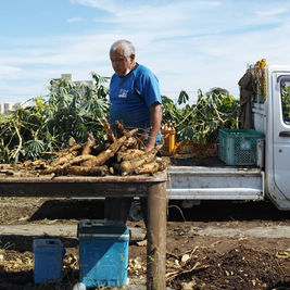 枯れ地や痩せ地でも育つキャッサバですが、天候によっての生育はやはり影響しますし、私たちが契約している農家さんのキャッサバは今日本でよくみる種類とは異なりとても柔らかく筋も少ないおいしいキャッサバです。他の畑ではすくすく育っているのに…自然界はむずかしいですね。こういうことが起こってしまいますと、来年はどうなるかわかりませんが、あくまでも自然のことなのでこればっかりはどうしようもなく、断念することに決めました。昨年も大盛況のイベントだったためとても心苦しい限りです。